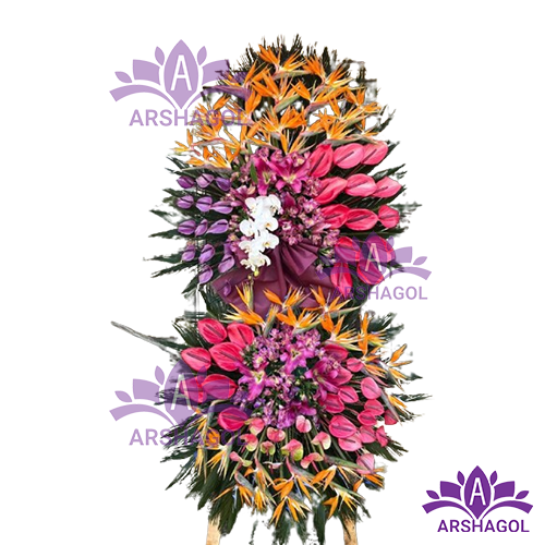 ترکیب گلها:با انتخاب و گلکاری دقیق، این تاج گل از ترکیب هارمونیک و زیبایی بینظیری از رنگها و انواع گلها بهرهمند است. از رزهای دلپذیر تا لیلیومهای شیک، هر گل به تنهایی یک اثر هنری است.
