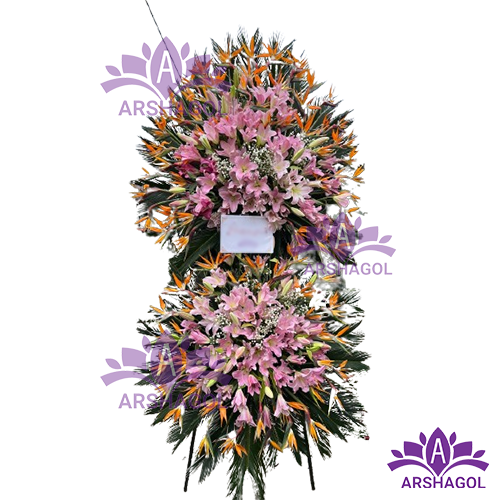 ترکیب گلها:با انتخاب و گلکاری دقیق، این تاج گل از ترکیب هارمونیک و زیبایی بینظیری از رنگها و انواع گلها بهرهمند است. از رزهای دلپذیر تا لیلیومهای شیک، هر گل به تنهایی یک اثر هنری است.